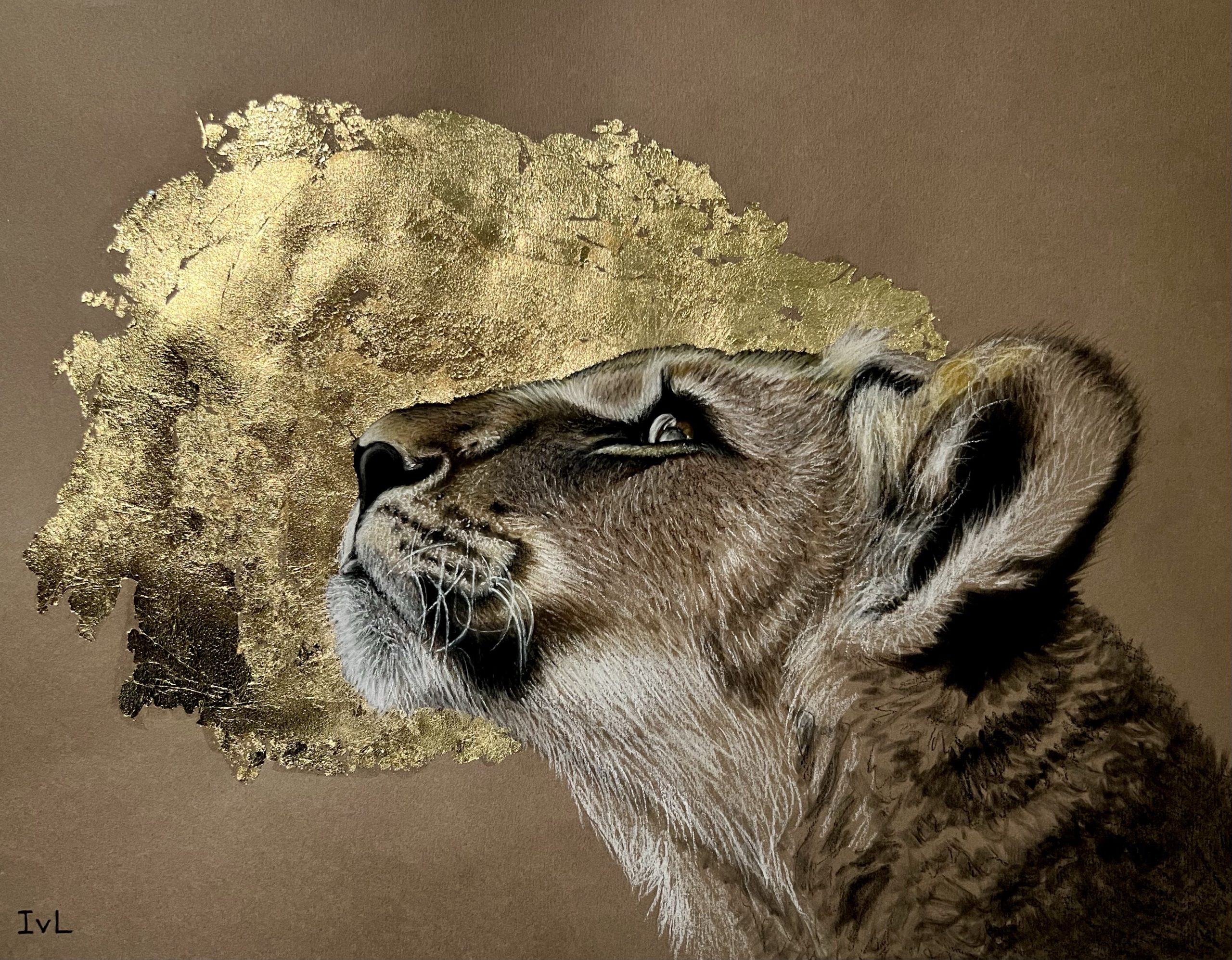 Animals Lion Cub Sold – Pastel & gold leaf on paper – 32 x 41cm – Incl. frame: 40 x 50cm Lion Cub Fenna Commissioned work – Pastel on paper – 41 x 32cm – Incl. frame: 40 x 50cm Fenna Labrador Commissioned work – Pastel & gold leaf on paper – 32 x 41cm – Incl. frame: 40 x 50cm Labrador Jolie Commissioned work – Pastel on paper – 32 x 41cm – Incl. frame: 40 x 50cm Jolie Elo Commissioned work – Pastel on paper – 65 x 50cm Elo